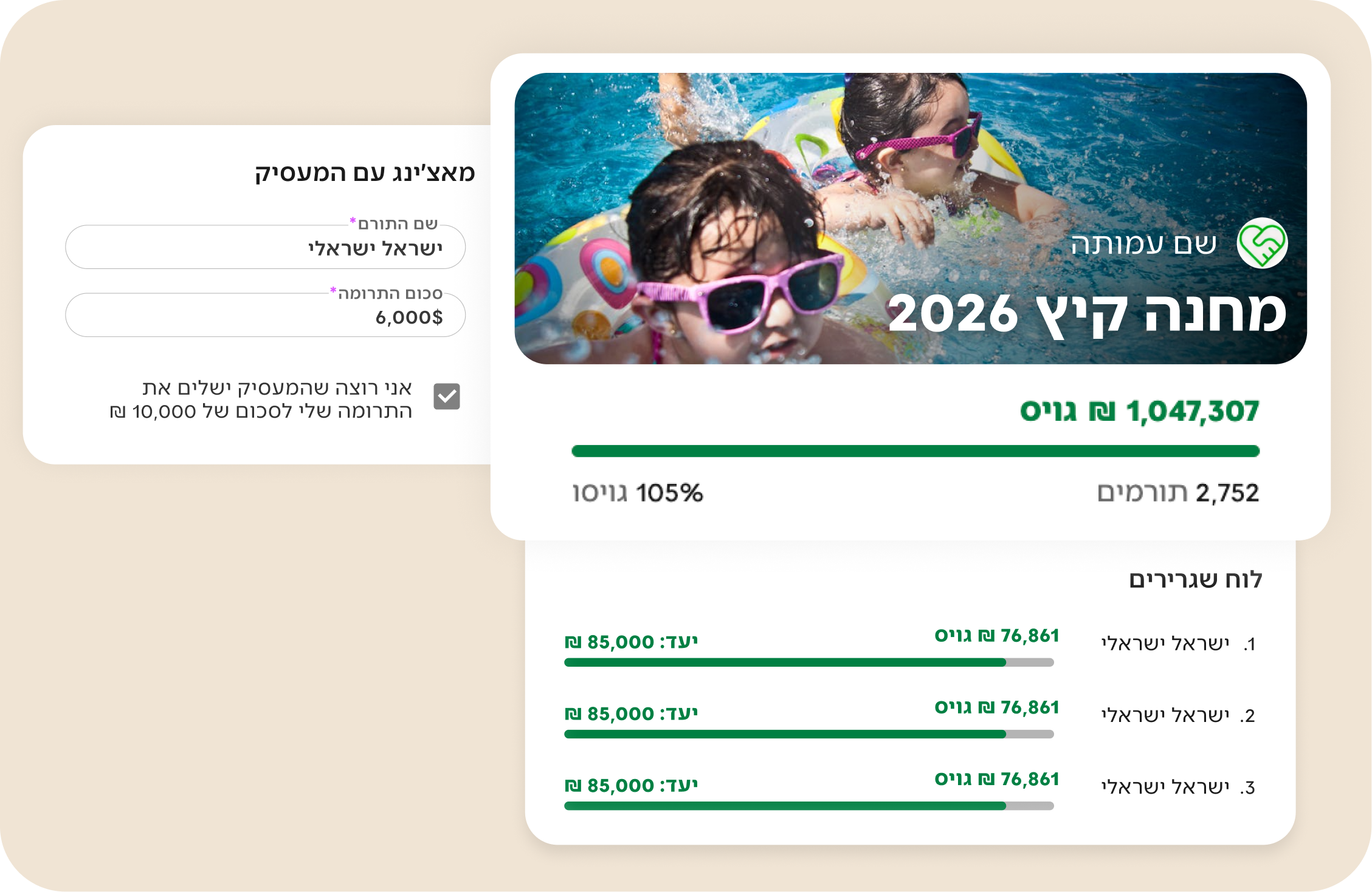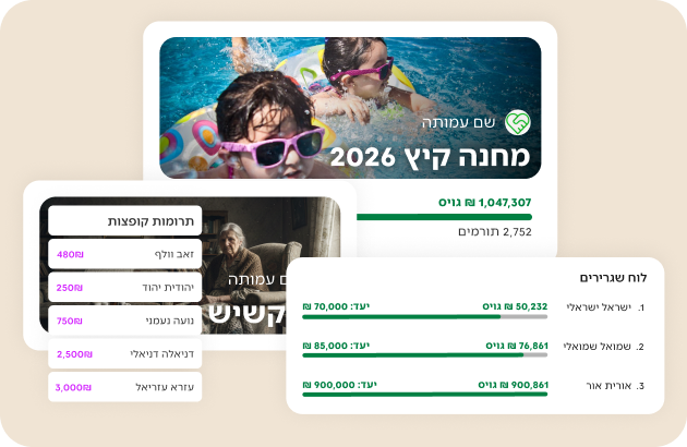 הפלטפורמה שלנו נוחה, יעילה ומתעדכנת כל הזמן, עם הכלים והיכולות המתקדמים ביותר לעמותות.
