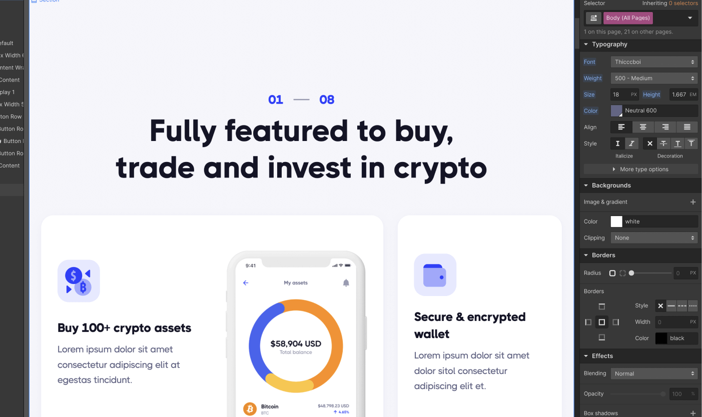 As you could see above, Coin X was built on Webflow using the best practices to make it very easy for you to edit the template and customize it to your needs.